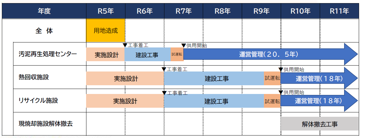事業概要:本事業は、PFI法に基づき、特定事業として、PFI手法のBTO方式(起債適用型)により実施するもので、湖北広域行政事務センター新一般廃棄物処理施設を設計・建設し、これを維持管理・運営するとともに、新一般廃棄物処理施設の稼働後に、現焼却施設(クリスタルプラザ)の解体工事を行うこととしています。